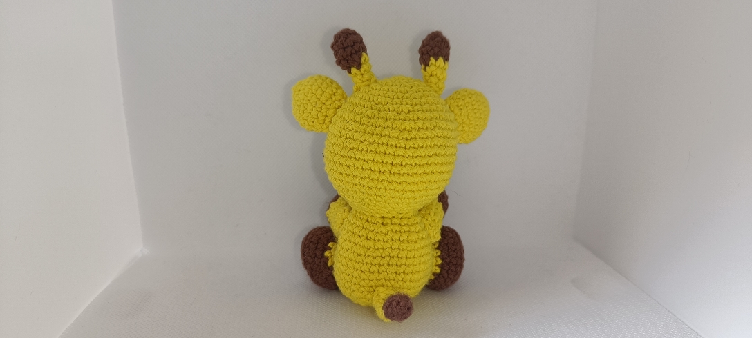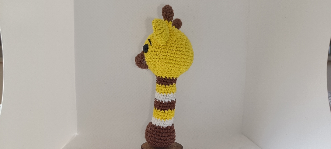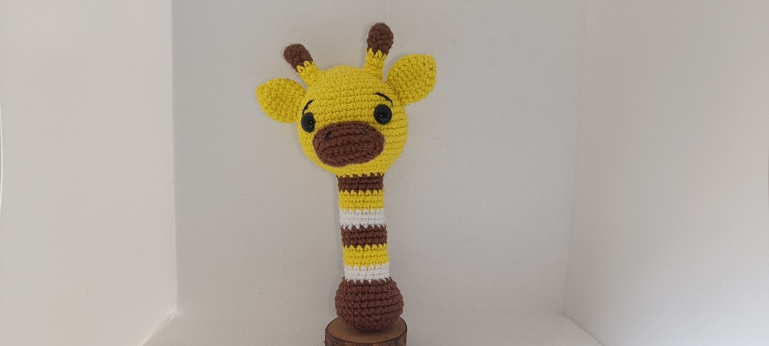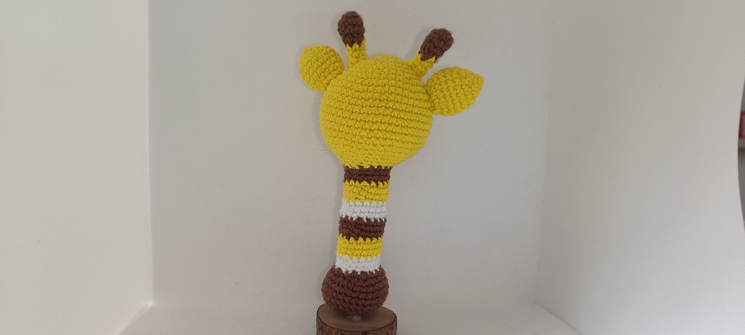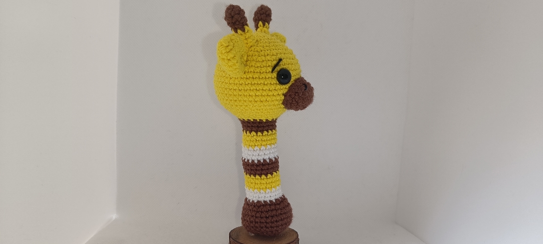 La jirafa de la derecha cuenta con dos sonajeros, uno en la cabeza y otro en la base.