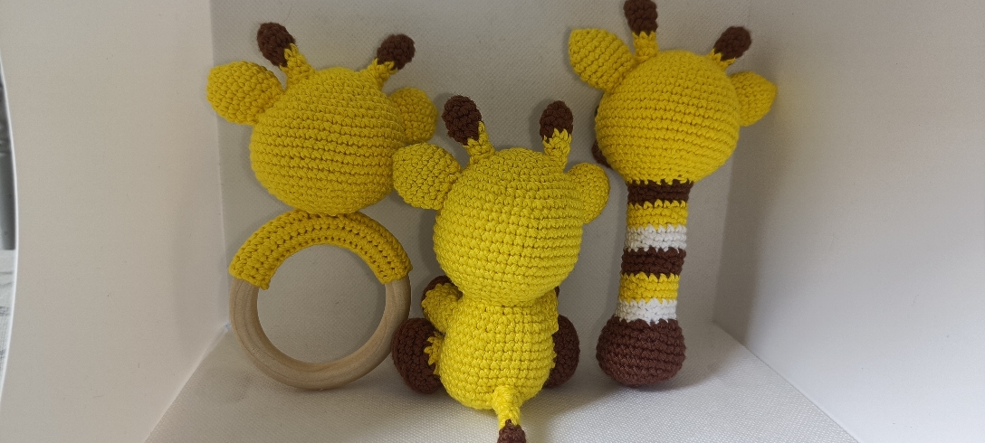 La jirafa de la izquierda es un mordedor con sonajero incluido.