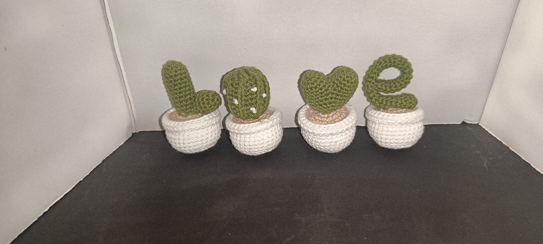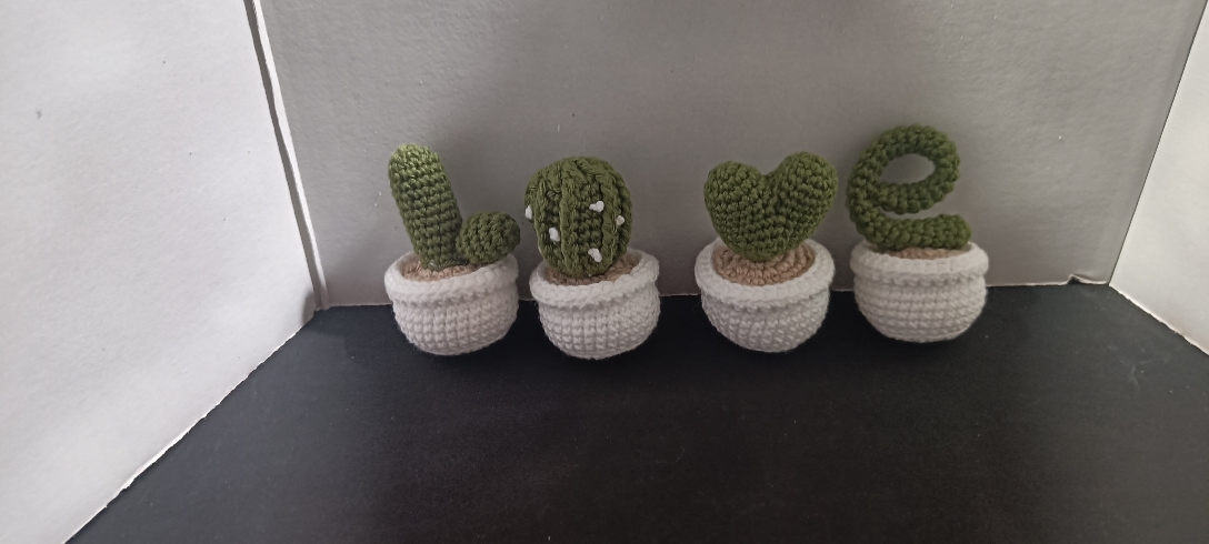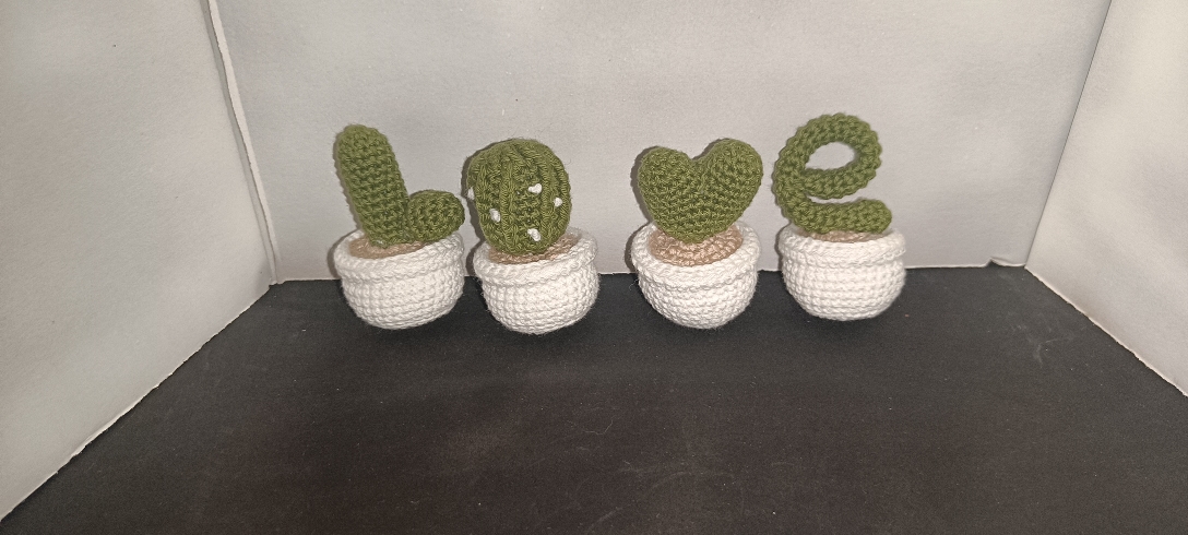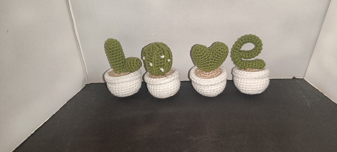 Macetas de cactus que forman la palabra Love.